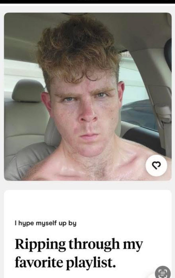 (Screenshot of McGann’s Hinge profile)